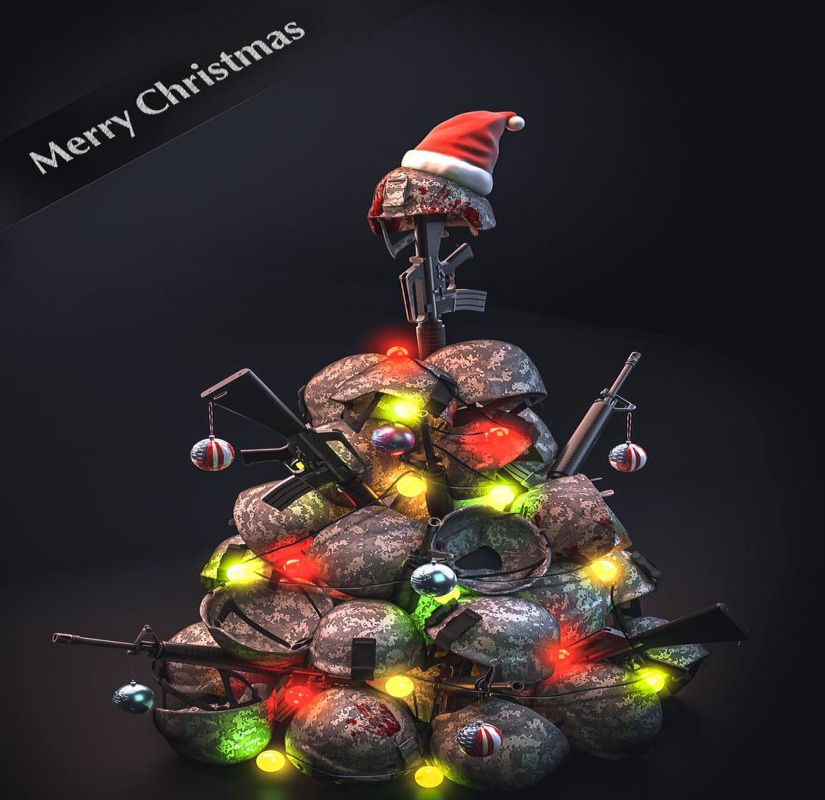 اعضای این گروه تروریستی پوستری را به اشتراک گذاشتند که در آن یک داعشی با صورت پوشیده در حالی که در یک دستش چاقوی خونی و در دست دیگرش سر بابا نوئل است، دیده میشود.