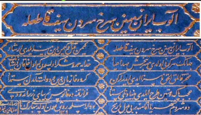یک بخش مربوط به دوران سلطان احمد سوم و دیگری مربوط به سلطان محمود اول است. تاریخ نگارش کتیبه سلطان احمد سال ۱۱۳۹ه.ق [۲۹۱ سال پیش] و سلطان محمود سال ۱۱۵۷ه.ق میباشد.