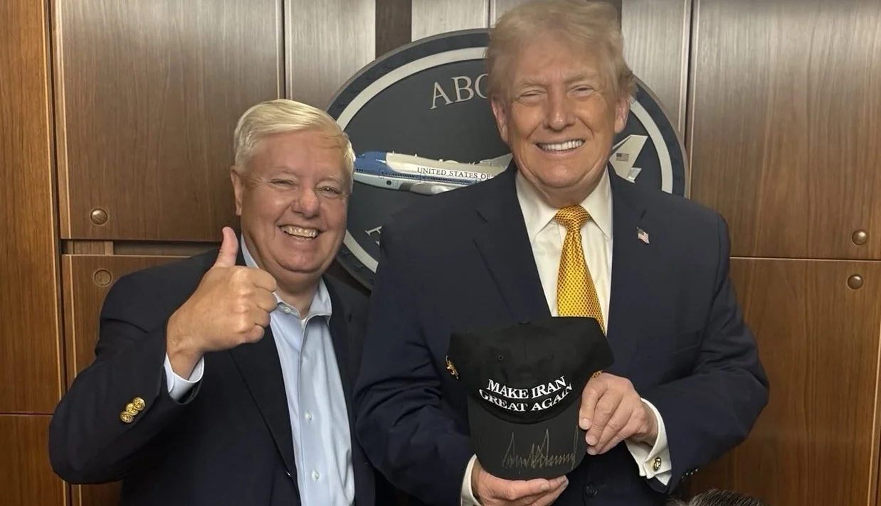 «محبت نیوز»- لیندزی گراهام، عضو کنگره آمریکا تصویری از دونالد ترامپ، رئیس جمهور آمریکا را منتشر کرد که در آن کلاه منقش به شیروخورشید و پیام «عظمت را دوباره به ایران بازمیگردانیم» را امضا کرده است.