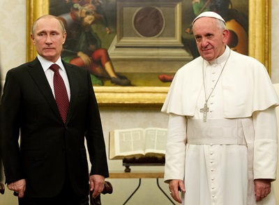 به گزارش «محبت نیوز» پاپ در این ملاقات بطور نمادین، مدال «فرشته صلح» را به رئیس جمهوری روسیه هدیه کرد و از او خواست که تلاش های صادقانه ای برای دستیابی به صلح در اوکراین انجام دهد.