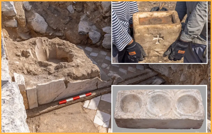 بر اساس بیانیه مطبوعاتی منتشر شده در تاریخ ۳۰ مارس توسط فاکس نیوز دیجیتال، این بلوک مرمری در تالار غسل تعمید (فوتیستریون) کشف شده است. مقامات معتقدند این قطعه میتواند «مرحلهای ناشناخته از مراسم غسل تعمید مسیحیان اولیه را که تاکنون ثبت نشده است»، روشن سازد.