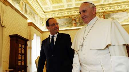 به گزارش«محبت نیوز» کاخ ریاست جمهوری فرانسه روز دوشنبه اعلام کرد ملاقات خصوصی اولاند با پاپ در مورد وقایع اخیر کلیسای «سن اِتییِن دو روورای» و قتل کشیش فرانسوی این کلیسا، صورت می گیرد.