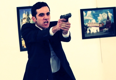 منابع خبری اعلام کرده بودند که فرد ضارب پس از تیراندازی به سفیر روسیه به زبان ترکی فریاد زد: «حلب را فراموش نکنید، سوریه را فراموش نکنید. تا زمانی که «شهرهای ما» امن نباشند، شما در امان نخواهید بود. کسانی که در این رنج و مصیبت نقش داشتند، بهایش را می پردازند».
