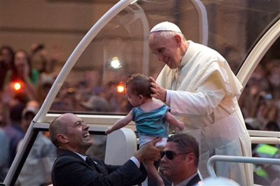 در این مراسم، رهبر کاتولیک های جهان ۲۸ کودک را غسل تعمید داد. پس از آنکه چند کودک گریه کردند، پاپ به شوخی گفت کنسرت شروع شد. در پی آن رهبر کاتولیک های جهان از مادران خواست تا آزادانه و بدون نگرانی به کودکانشان شیر بدهند.