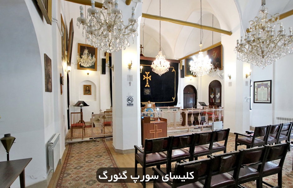 نشانی کلیسای سورپ گئورگ: تهران، خیابان وحدت اسلامی، بازارچه قوام الدوله، کوچه شهید مغفوری