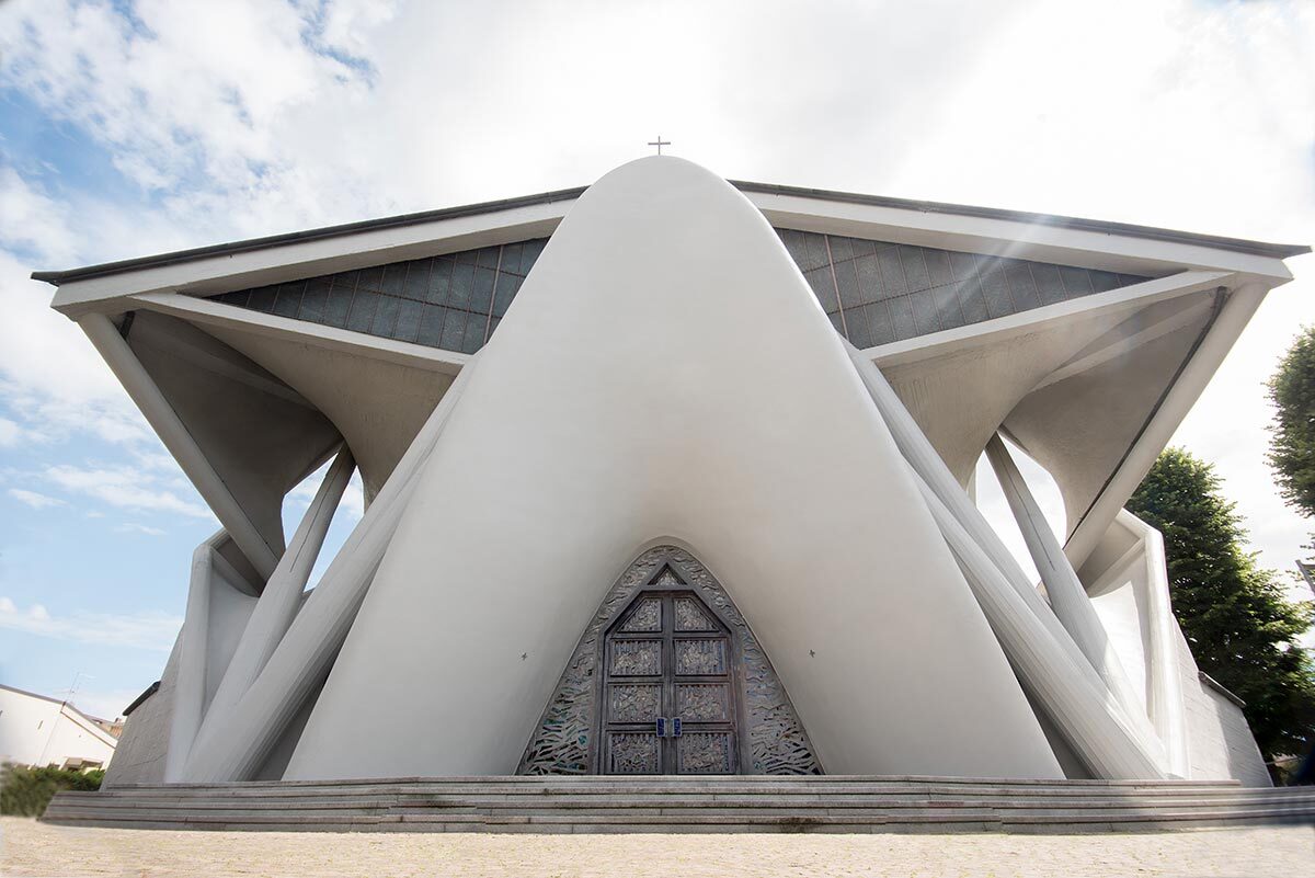 «محبت نیوز»- کلیسای ماریا سانتیسیما ایماکولاتا (Maria Santissima Immacolata) در محله لونگوئلو (Longuelo) واقع در برگامو، ایتالیا، یکی از شاهکارهای معماری مدرن است که توسط جوزپه (پینو) پیتزیگونی طراحی شده است. این کلیسای کاتولیک رومی که بین سالهای ۱۹۶۱ تا ۱۹۶۵ ساخته شد، به دلیل ساختار بتنی متمایز و طراحی صدفمانند خود شهرت دارد. فرم کلیسا به عنوان یک «پوسته هذلولی-سهموی» توصیف شده است. پیتزیگونی، که به عنوان استاد ساخت و ساز بتنی شناخته میشود، از تکنیکهای نوآورانه برای خلق این فرم ارگانیک و پویا بهره برده است.